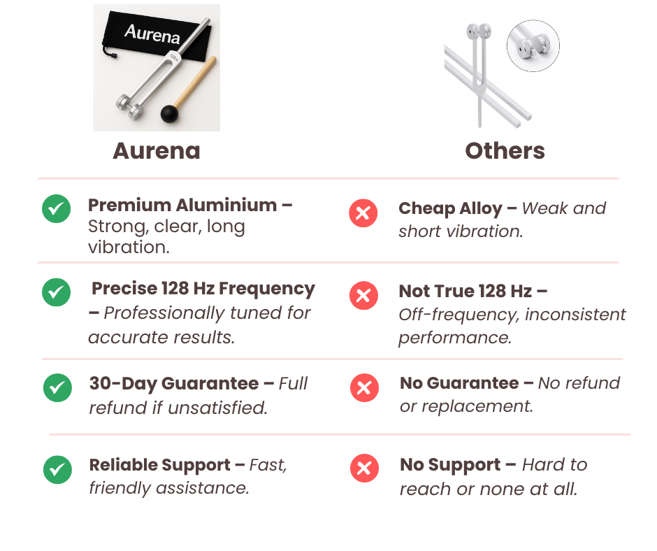 If you don’t feel the results you expect, we offer a 30-day money-back guarantee — so you can experience the Aurena Healing Tuning Fork completely risk-free.