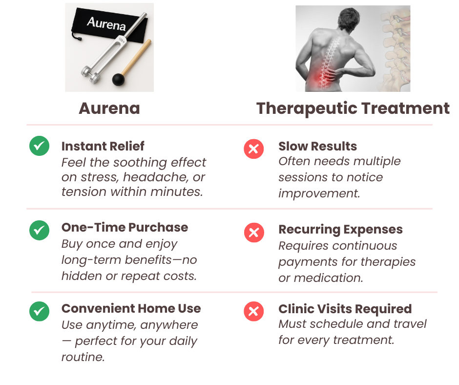 The Aurena Healing Tuning Fork is thoughtfully designed to support a variety of wellness needs — from joint and muscle tension to stress, anxiety, and overall energy balance.